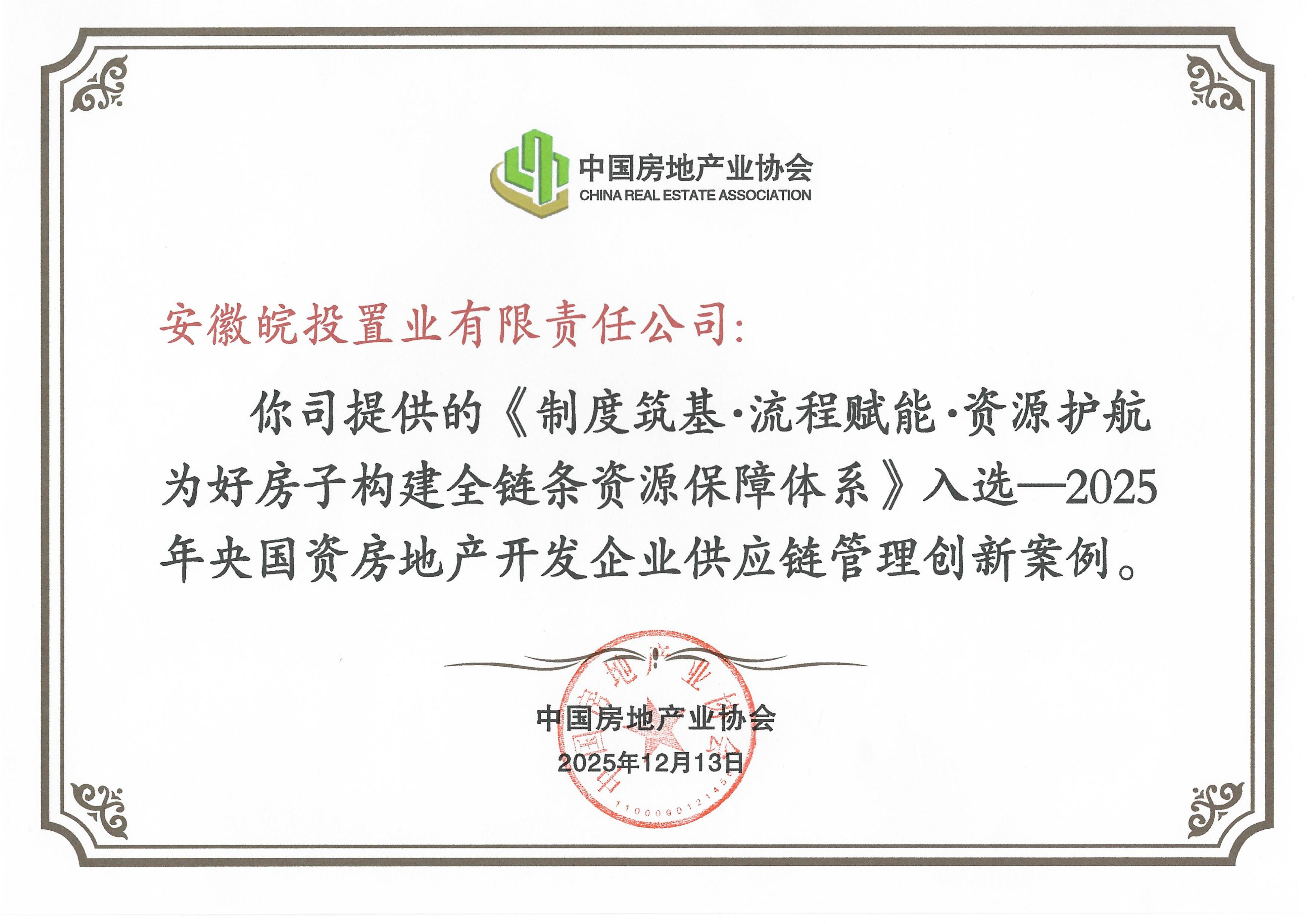喜報|皖投置業(yè)公司入選“2025年央國資房地產(chǎn)開發(fā)企業(yè)供應(yīng)鏈管理創(chuàng)新案例名單”