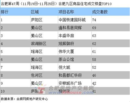 合肥第47周(11月19日-11月25日)合肥九區(qū)商品住宅成交樓盤TOP10