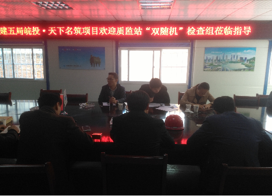 2017年11月1日上午,合肥市質(zhì)量安全監(jiān)督站相關領導蒞臨合肥天下名筑一期二標項目進行“雙隨機”檢查并召開專題會議,天下名筑現(xiàn)場主要負責人,監(jiān)理單位、中建五局相關負責人參加。