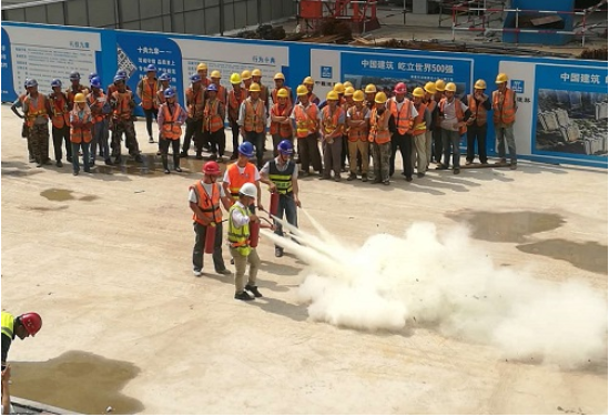 演練活動(dòng)開始前,由總包單位進(jìn)行消防器材的演練培訓(xùn),指導(dǎo)現(xiàn)場各個(gè)工種如何正確使用消防器材。隨后,項(xiàng)目部負(fù)責(zé)人宣講本次安全月的主題以及組織本次安全應(yīng)急活動(dòng)的必要性。最后,由監(jiān)理單位,總包單位及分包單位等一起進(jìn)行消防應(yīng)急演練活動(dòng)并圓滿完成。