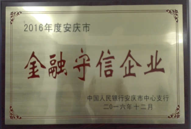 皖投同安公司榮獲安慶市“金融守信企業(yè)”榮譽稱號