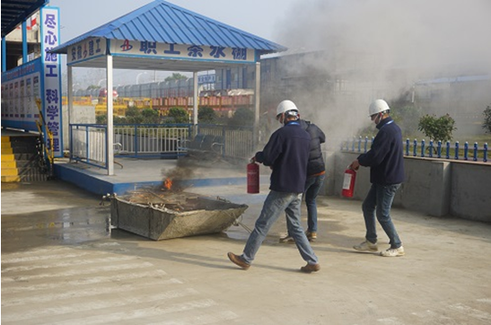 應(yīng)急演練模擬工地現(xiàn)場出現(xiàn)火情和人員受傷的突發(fā)狀況,根據(jù)突發(fā)事件應(yīng)急處置方案,進行了火災(zāi)報警、火情處置,傷員急救等演練。