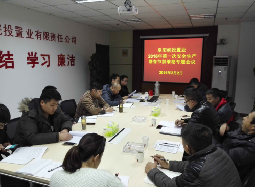 2016年2月2日,阜陽城市公司組織召開濱河花園項目2016年度第一次安全生產(chǎn)暨春節(jié)前維穩(wěn)安全專題會議。阜陽城市公司工程技術(shù)中心,濱河花園項目一期監(jiān)理、總包單位相關(guān)負責人參加會議。