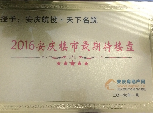 2016年1月28日,皖投同安公司開(kāi)發(fā)運(yùn)營(yíng)的安慶天下名筑項(xiàng)目榮耀摘得“2016安慶樓市最期待樓盤”。該獎(jiǎng)項(xiàng)的摘得,對(duì)皖投同安全體員工來(lái)說(shuō),是極大的鼓舞,也為項(xiàng)目努力為廣大業(yè)主打造優(yōu)質(zhì)的居住環(huán)境的目標(biāo)給予肯定。在后續(xù)的開(kāi)發(fā)建設(shè)中,全體皖投同安人有信心、有恒心、有誠(chéng)心將項(xiàng)目?jī)A力打造成安慶市東部新城“政務(wù)中心·康熙河畔,多業(yè)態(tài)、健康環(huán)保、高端智能化新型宜居宜商宜游社區(qū)”,也將為“彰顯皖投置業(yè)品牌,引領(lǐng)宜城商居市場(chǎng)”揮毫灑墨、奉獻(xiàn)青春、貢獻(xiàn)力量。