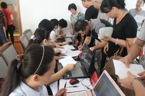 2012年9月1日,湖東景園商鋪搖號(hào)工作順利開(kāi)展。早上七點(diǎn)多鐘,客戶們就陸續(xù)來(lái)到現(xiàn)場(chǎng),排起了長(zhǎng)隊(duì),工作人員立即投入到緊張有序的工作中去。此次商鋪銷售與以往不同,在商鋪數(shù)量少、定購(gòu)客戶多的情況下,為了防止在搖號(hào)過(guò)程中有突發(fā)事件發(fā)生,工作人員緊密配合、環(huán)環(huán)相扣,從簽到、搖號(hào)、選房、交款、簽訂協(xié)議、房源確認(rèn)等各項(xiàng)環(huán)節(jié)中,嫻熟機(jī)智的應(yīng)變著每一個(gè)環(huán)節(jié)的分工角色。