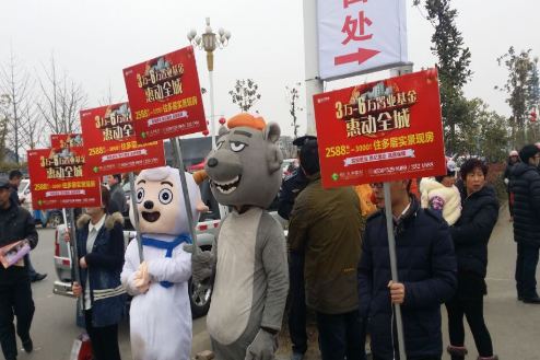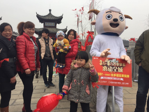 當天一早,“水岸星城”就帶著灰太狼和喜羊羊兩大萌物走上街頭,宣傳隊伍從積玉橋出發(fā),經(jīng)過洪攔橋,最后到達太平橋。萌物們所到之處無不成為焦點,憨態(tài)可掬的喜羊羊和灰太狼站在了一起,立即引起了路人的圍觀,儼然成為街頭明星!它們一邊與觀眾們親密互動,一邊派發(fā)小禮品,圍觀的小朋友們爭相和它們拍照留念,場面熱鬧非凡,笑語不斷。在萌物與觀眾們互動的過程中,水岸星城的工作人員適時派發(fā)單頁、介紹項目正在進行的銷售活動,傳遞項目最新的銷售信息。