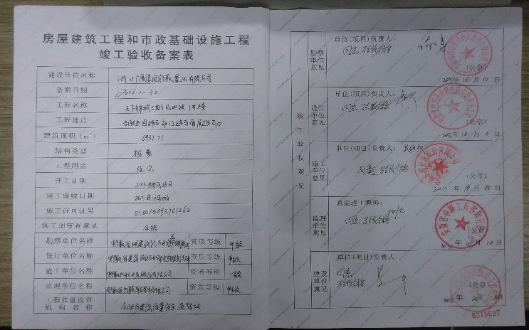2015年10月30日,天下錦城R5住宅工程完成竣工備案網(wǎng)上公示順利取得《房屋建筑工程和市政基礎(chǔ)設(shè)施工程竣工驗(yàn)收備案表》。