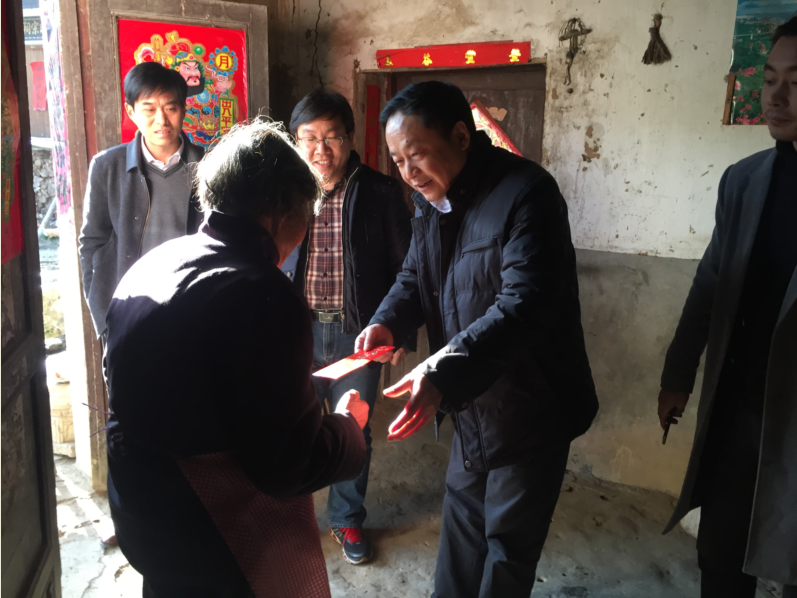 2016年1月19日由安徽省投資集團黨委副書記李俊杰、黨群工作部主任郭武偉及皖投置業(yè)副總經理謝東至帶領“愛心傳遞,真情永駐”扶貧捐助小組攜帶慰問品和愛心資金來到金寨縣水坪村的大山里。