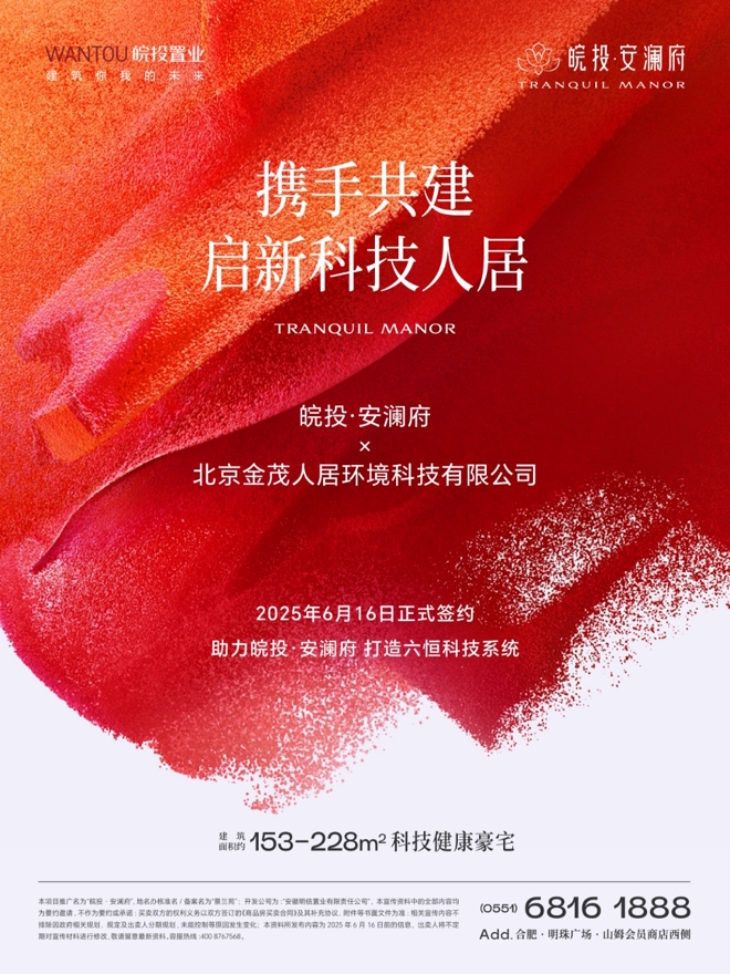 2025年6月16日,皖投置業(yè)公司旗下項目——皖投·安瀾府,與北京金茂人居環(huán)境科技有限公司就“科技系統(tǒng)”的引入與應(yīng)用正式簽約。此次合作旨在為業(yè)主提供更加舒適、健康、節(jié)能的居住體驗。